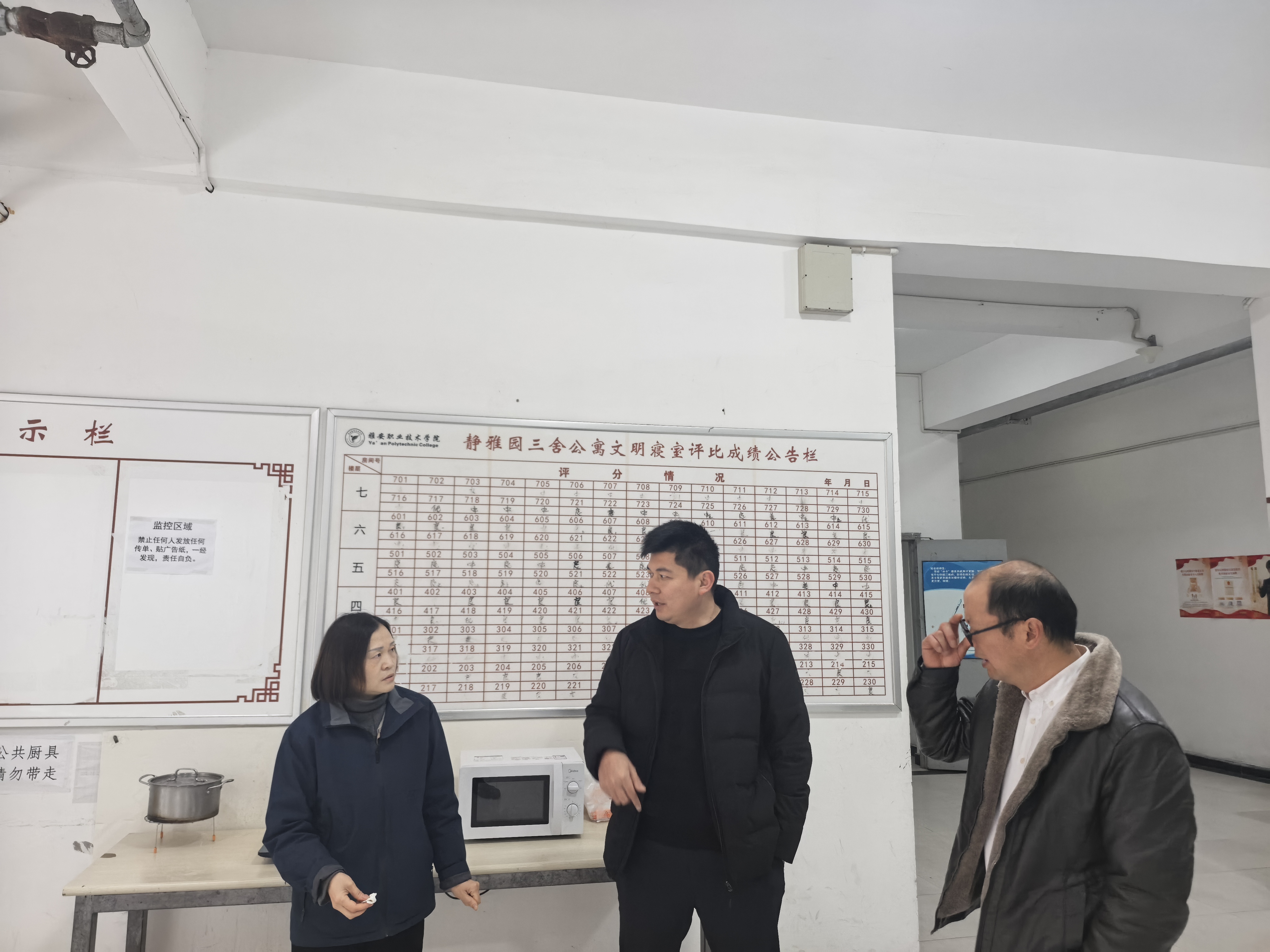 检查组一行先后深入两校区学生宿舍、教学楼、实训楼、学生食堂等重点区域,对消防通道畅通情况、安全疏散设施配备及完好状况进行了全方位检查。检查中发现,各重点部位整体安全形势平稳,但仍存在一些不容忽视的细节问题。在少部分教学楼区域,存在楼梯下方堆放杂物、部分楼层的消防疏散指示灯因故障未能正常亮起,墙面砖出现松动、脱落现象等问题。针对检查中发现的安全隐患,明确责任人、及整改措施,限期进行整改,确保隐患及时消除。