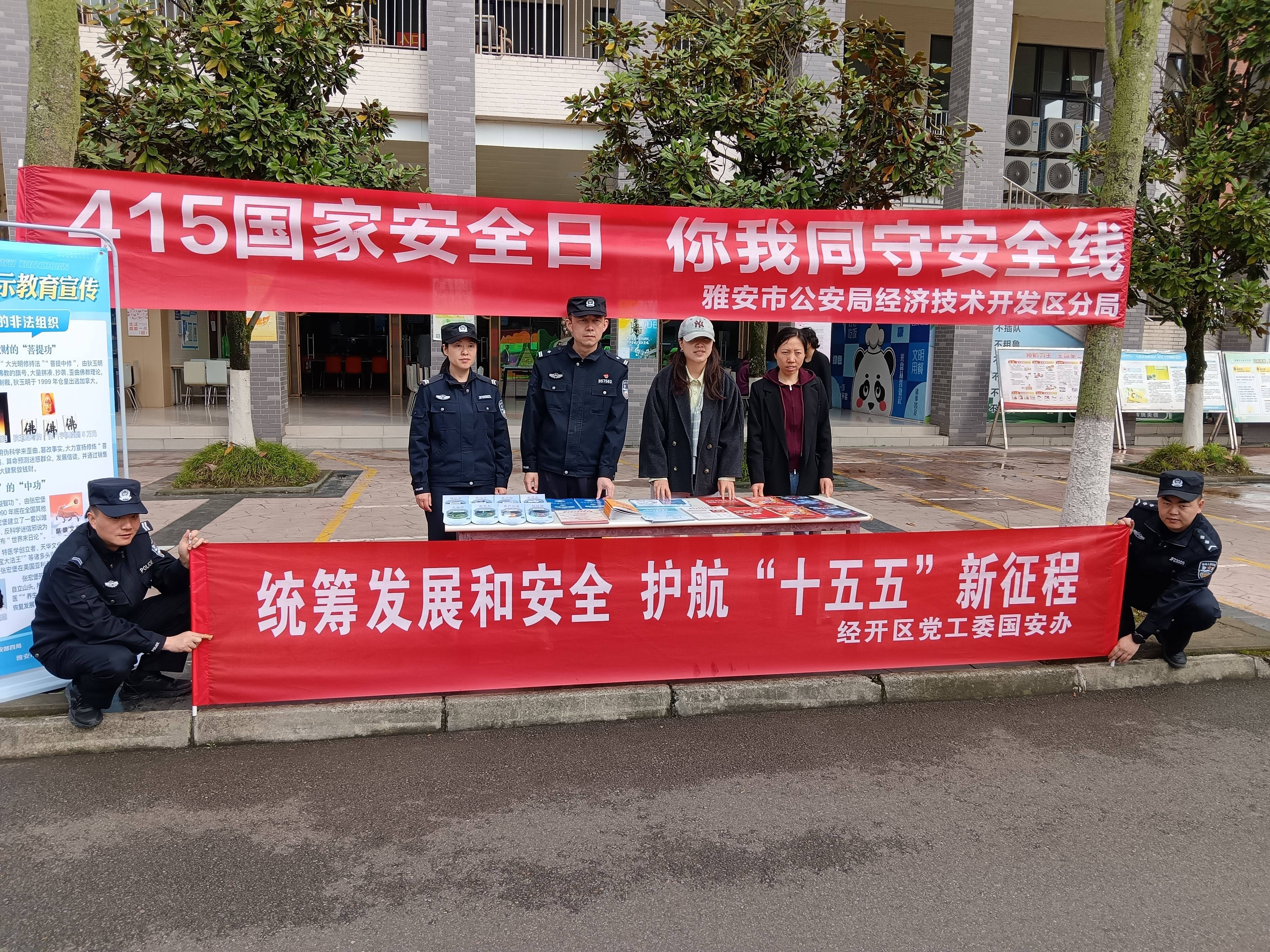 2026年4月15日是第11个“全民国家安全教育日”。为深入贯彻总体国家安全观,切实增强我校师生的国家安全意识与法治观念,4月15日上午,学校联合雅安市公安局经济开发区分局,在经开校区熊猫餐厅外设立宣传点,面向师生开展了一场内容丰富、形式生动的国家安全教育主题宣传活动。